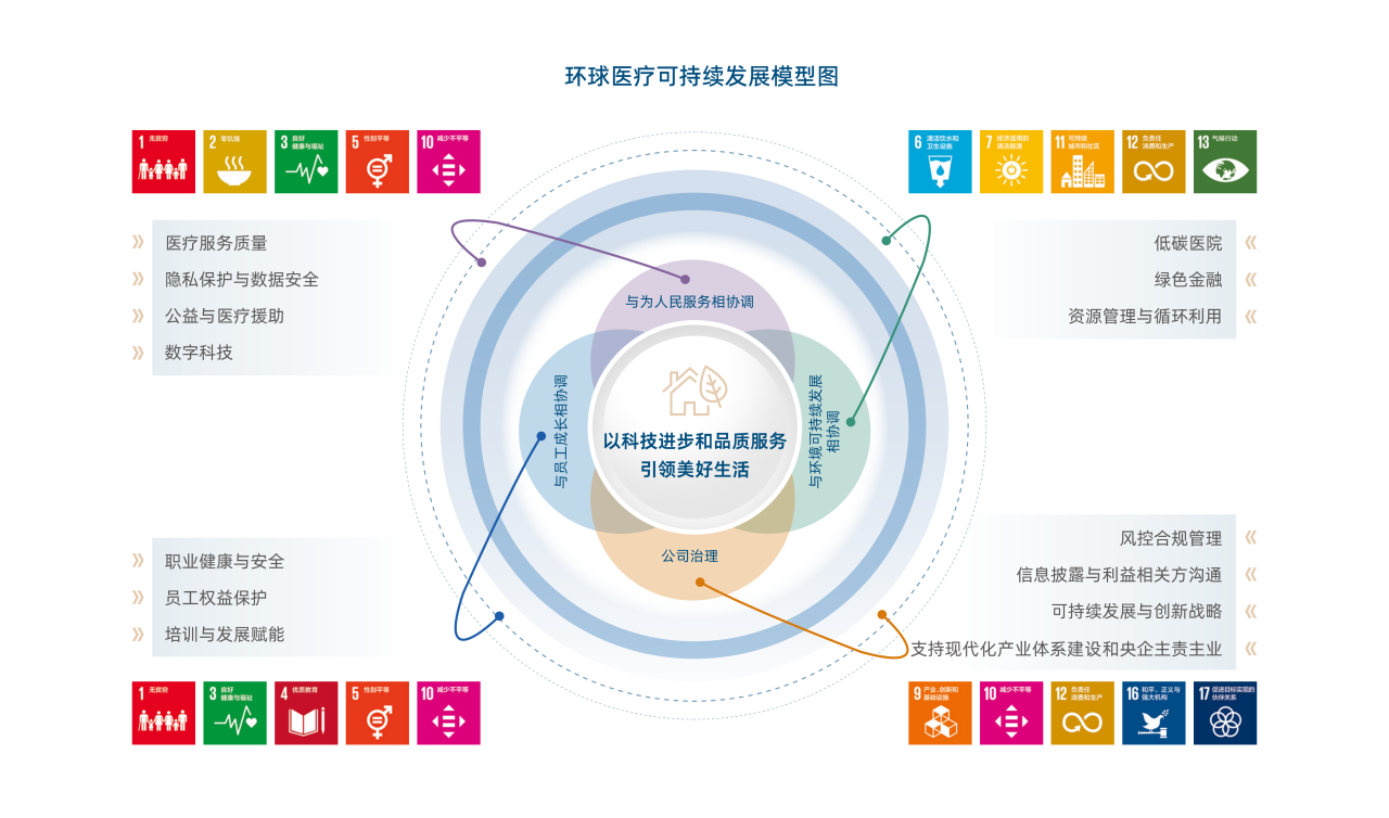 面向未来,环球医疗将坚守 “多元价值共创” 的ESG核心理念,将民生期盼与社会需求转化为具体的行动方案,通过优质医疗供给、绿色医院建设、做好金融五篇大文章、打造央企优秀人才发展平台、慈善公益援助、数据安全与隐私保护等一系列举措,践行国资央企的责任担当,以实现企业发展与为人民服务相协调、与员工成长相协调、与环境可持续发展相协调,以及与利益相关方共赢。
